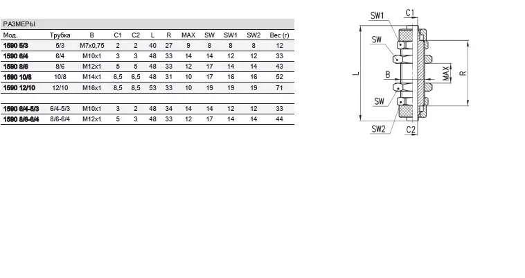 Фітинг прямий з’єднувач-перехідник CAMOZZI 1590 (з контр.гайками)