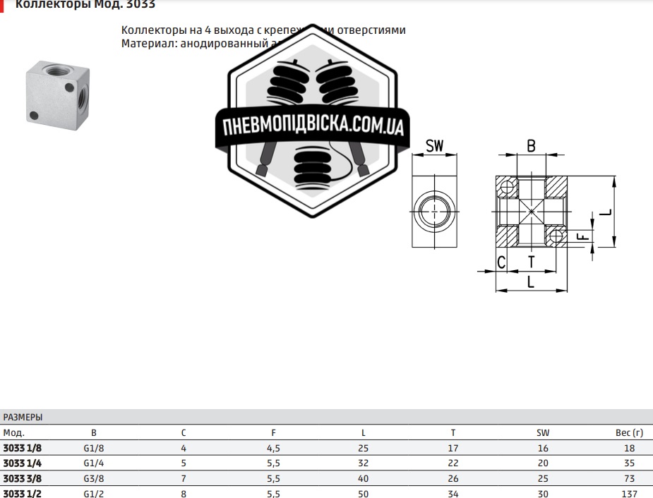 Фітинг колектор на 4 виходи CAMOZZI 3033