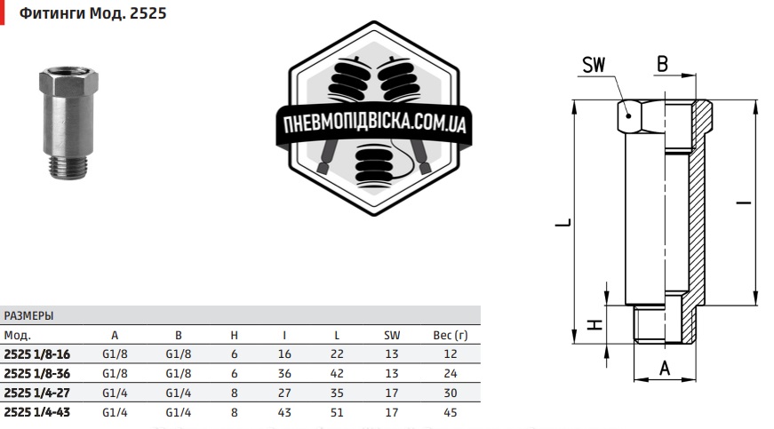 Фітинг прямий CAMOZZI 2525 (папа-мама)