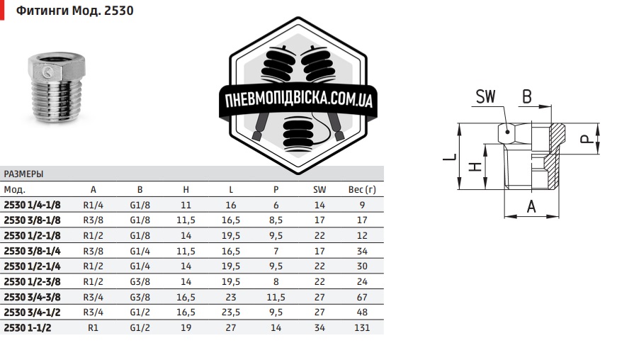 Зовнішнє/внутрішнє різьблення R, BSPT (трубне конічне DIN ISO 7), внутрішнє різьблення G, BSP (трубне циліндричне DIN ISO 228)
