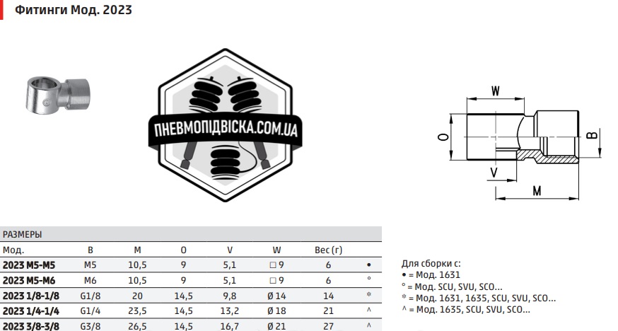 Фітинг сережка для збирання з Мод.1631, 1635 CAMOZZI 2023