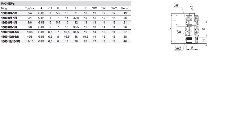 1/8, 1/4, 3/8, 1/2, М12х1,25