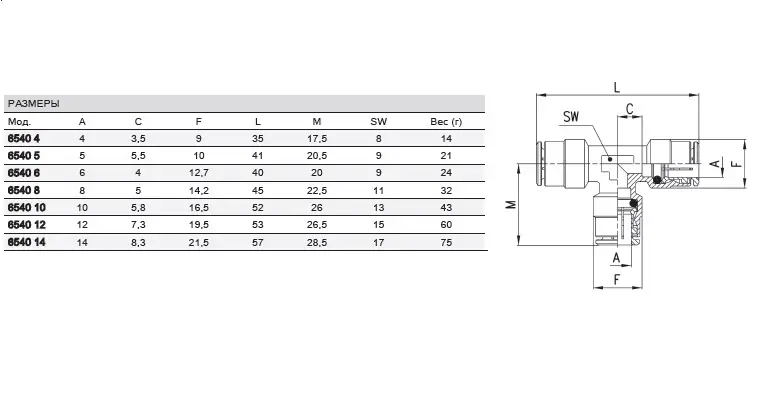 Фітинг цанговий трійник з’єднувач CAMOZZI 6540