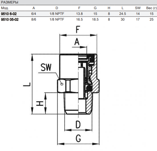 Фітинг прямий із зовнішнім метричним різьбленням CAMOZZI 9510