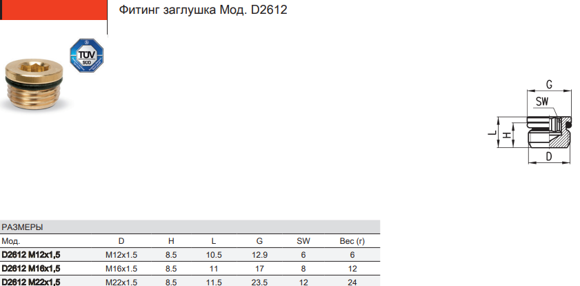 Штуцер заглушка CAMOZZI D2612.