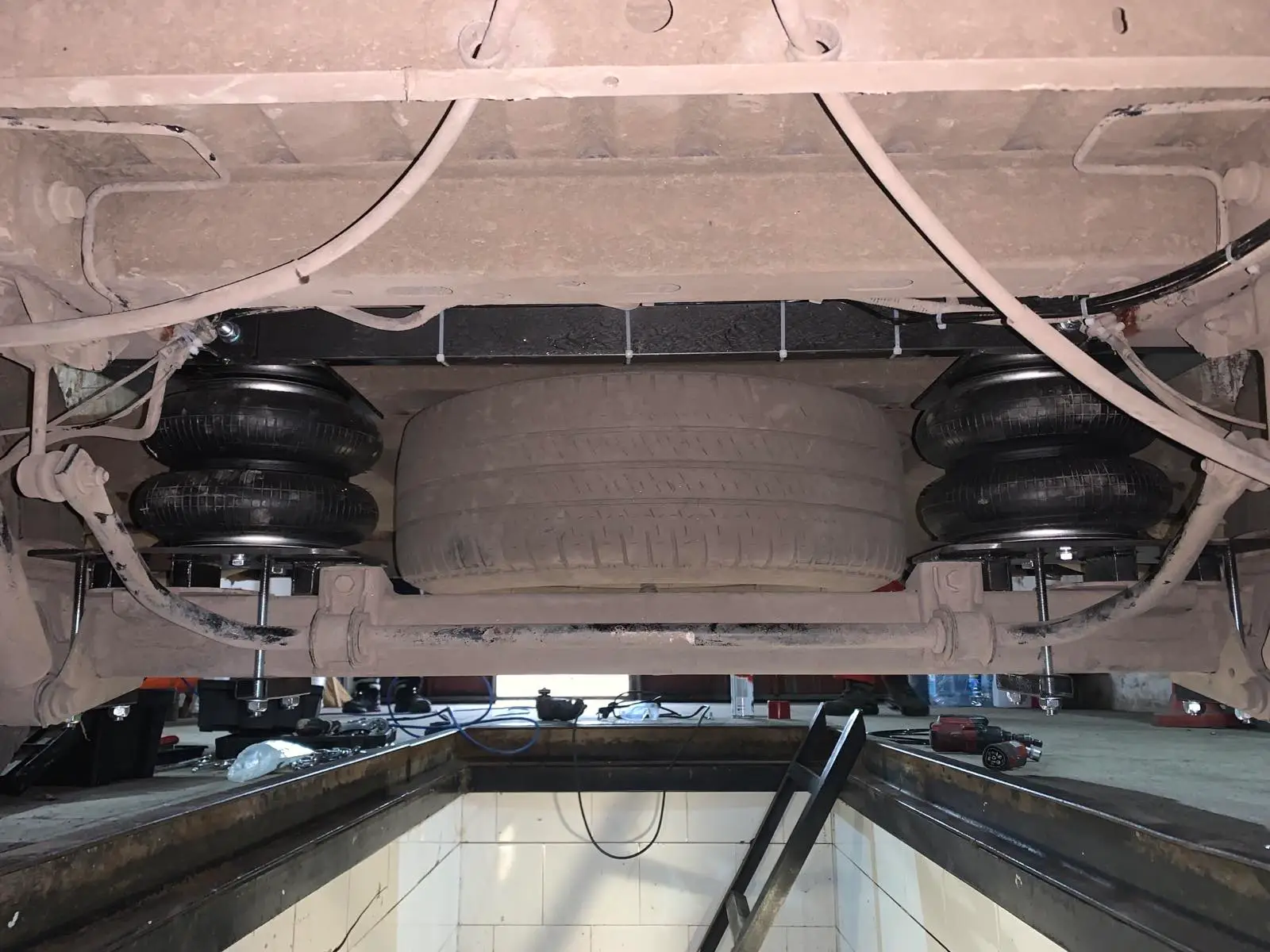 Принцип роботи: При накачці, подушки заповнюються повітрям і беруть на себе частину навантаження. При русі по нерівностям повітря стискається, що компенсує вібрації і хитання, значно менше розгойдує автомобіль. Для управління пневматичною підвіскою з салону можна встановити одно-контурну систему управління (обидва пневматичні елементи надуваються одночасно) або двох-контурне управління (повітряні подушки надуваються окремо).